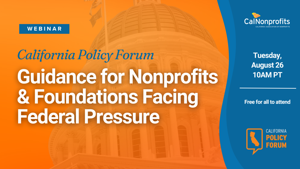 Nonprofits and foundations are increasingly navigating a political minefield. Whether you’ve been directly targeted or simply want to be prepared, join the next CA Policy Forum for expert legal insights.