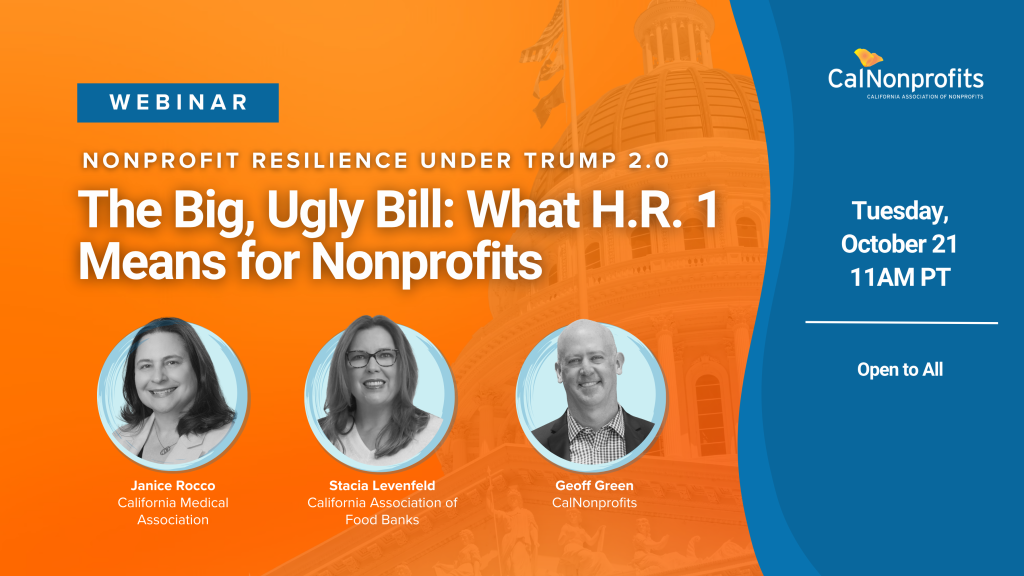Join us as we unpack the implications of the “One Big Beautiful Bill Act” for nonprofit organizations and help nonprofit leaders understand how H.R. 1’s budget and tax changes intersect with mission-driven work, nonprofit advocacy, and public trust in this critical moment.